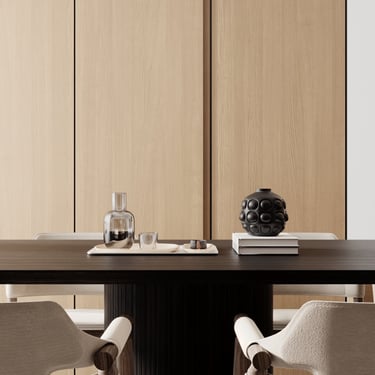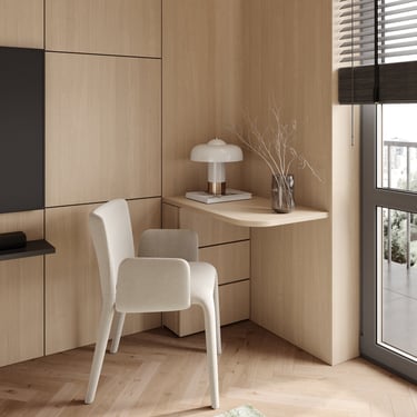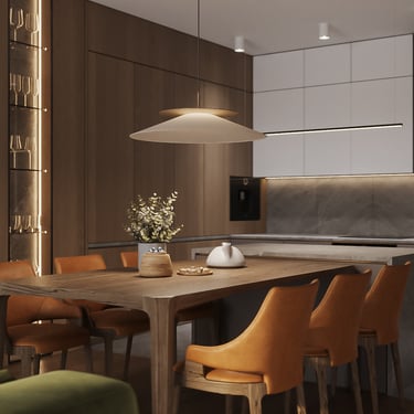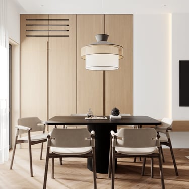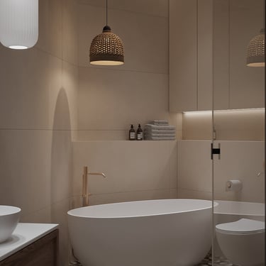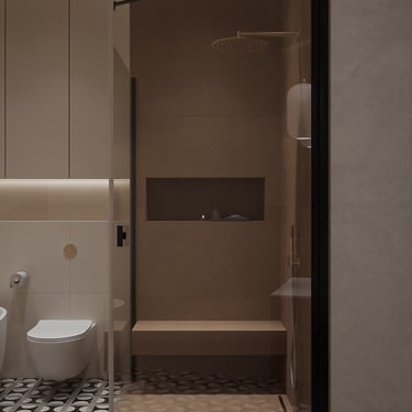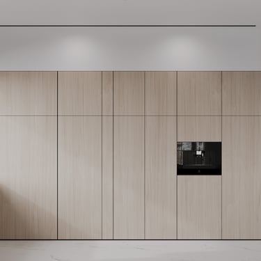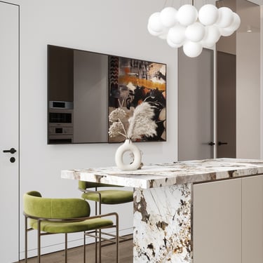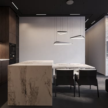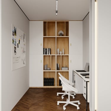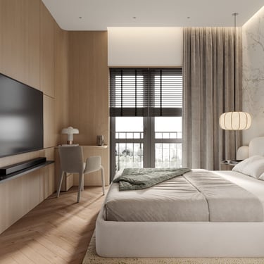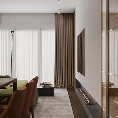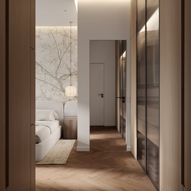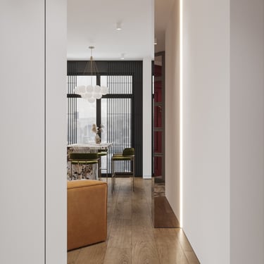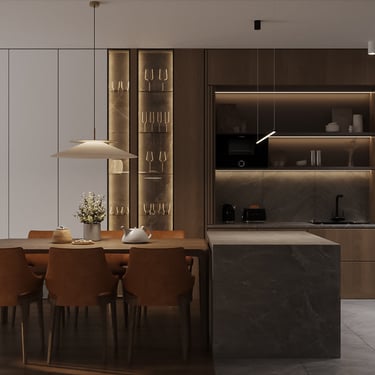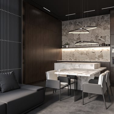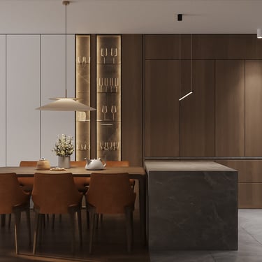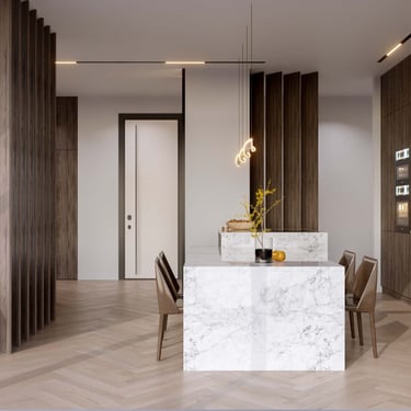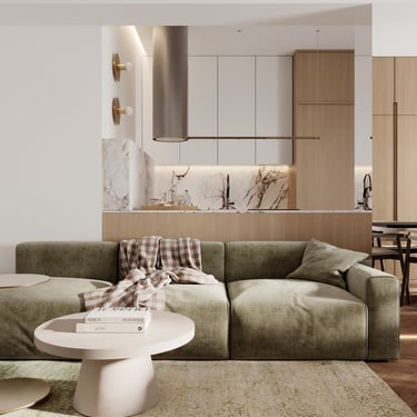 Nutsubidze is a calm urban retreat where finely detailed wood paneling, soft textiles, and marble accents frame everyday rituals. A warm neutral palette, layered lighting, and tailored built-ins bring a quiet luxury that connects the dining, living, and bedroom spaces into one cohesive home.