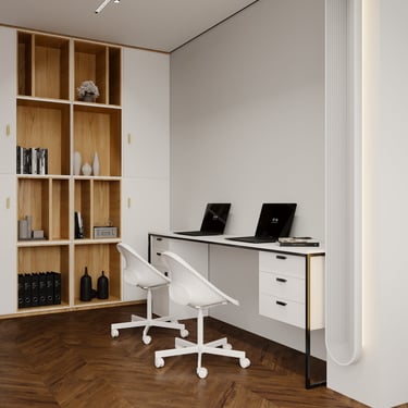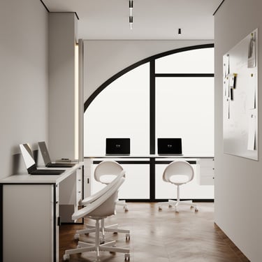 Connect Pilates Office is a calm, light-drenched workspace where soft white surfaces and sculptural shelving keep the focus on clarity and flow. Black-framed arches, warm wood accents, and curated art bring a subtle graphic rhythm that mirrors the studio’s balance between precision and mindful movement.